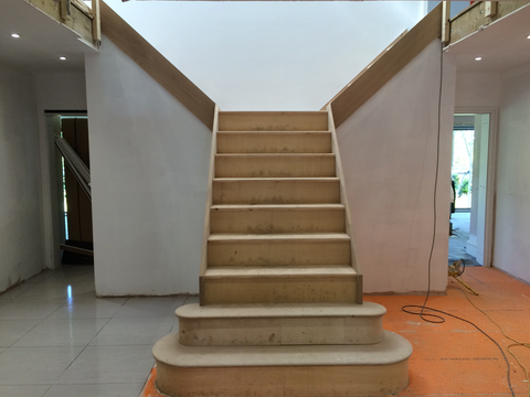 This large build of 250m2 floor size was beautifully designed with centre piece stairs that split into two, with a light tunnel over. Each room had its own ensuite with further more family bathroom and ground floor toilet. It has been suspended on a piled raft system.